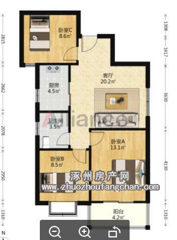 3室2廳1衛(wèi) 20層/共21層
